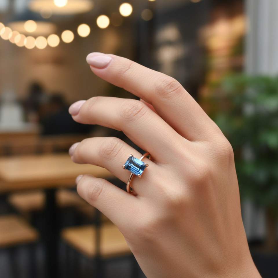 Product Name:London Blue Topaz Emerald Shape Sterling Silver Rose Gold Plated Ring