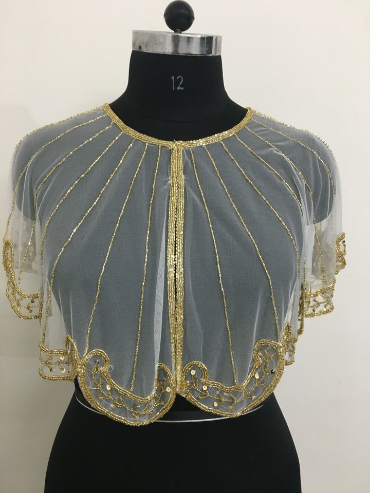 London Free Shipping Best-Selling Net Fabric Hand Beads Work Ponchos Top Shrug Blouse Cardigan Shirt Style Party Wear Honeymoon