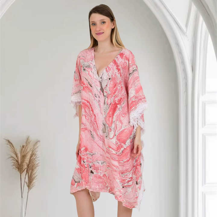 London Summer Vacation Women Wardrobe Wear Kaftan Caftan Party Bikini Beach T Shirt Type Cover up Free Size Dress Multi Color