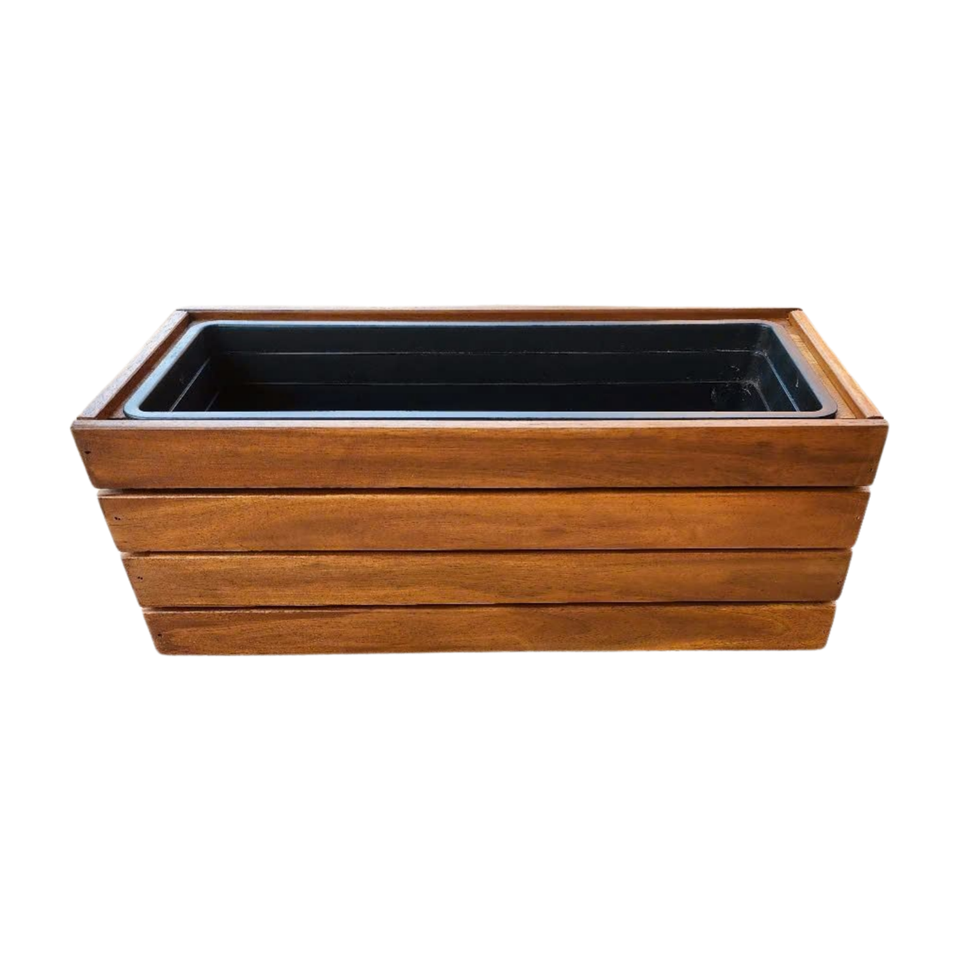 Long Acacia Wood Planter Box with Plastic Liner Outdoor Garden Flower Bed Rustic Patio Decoration