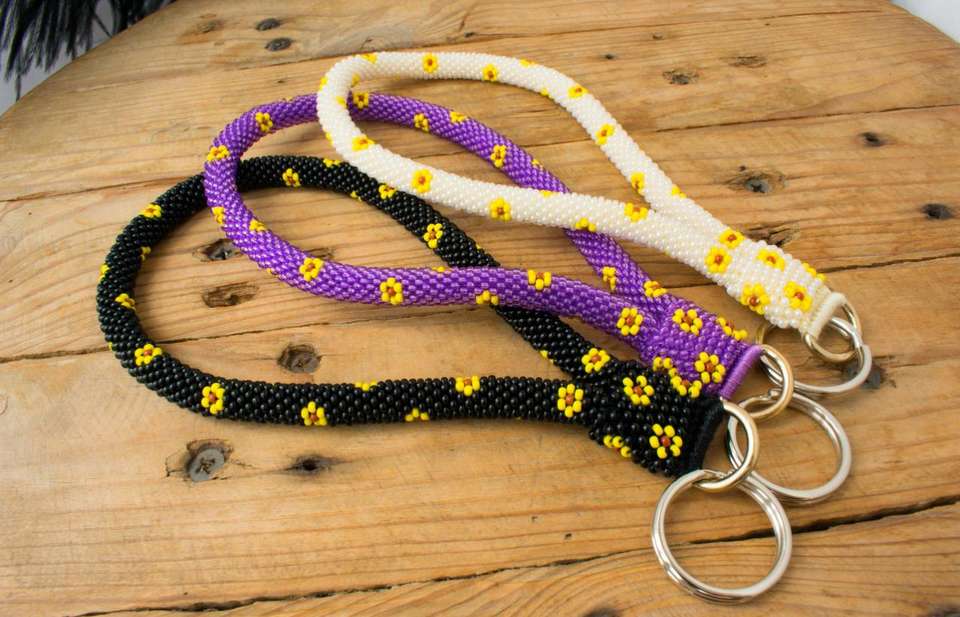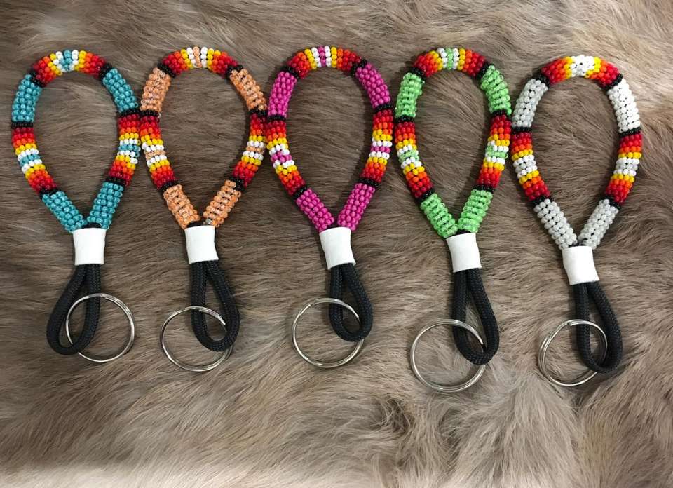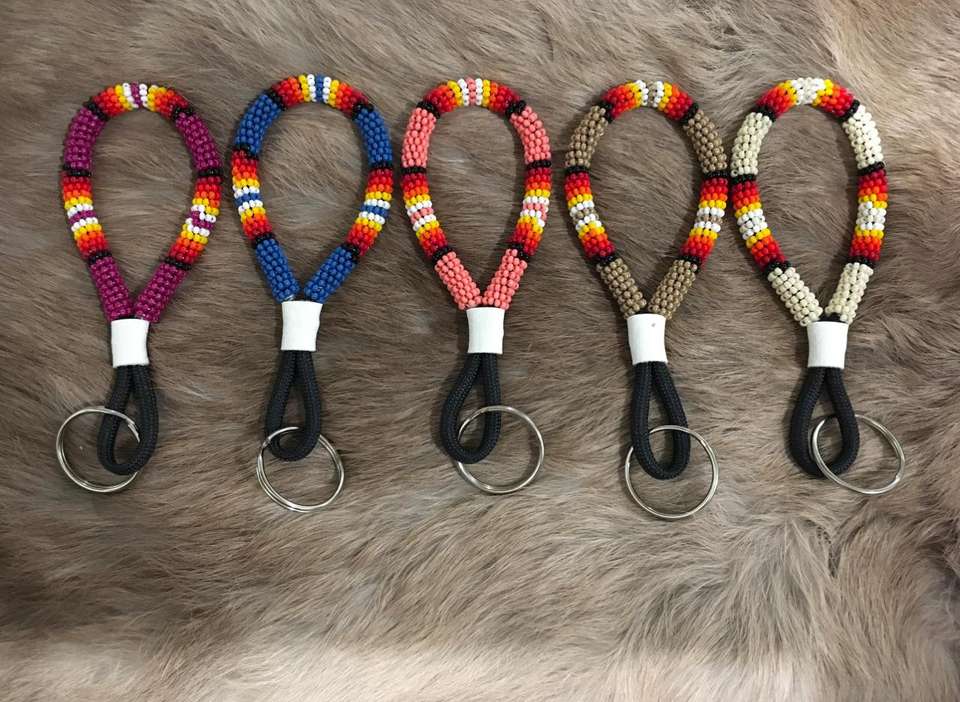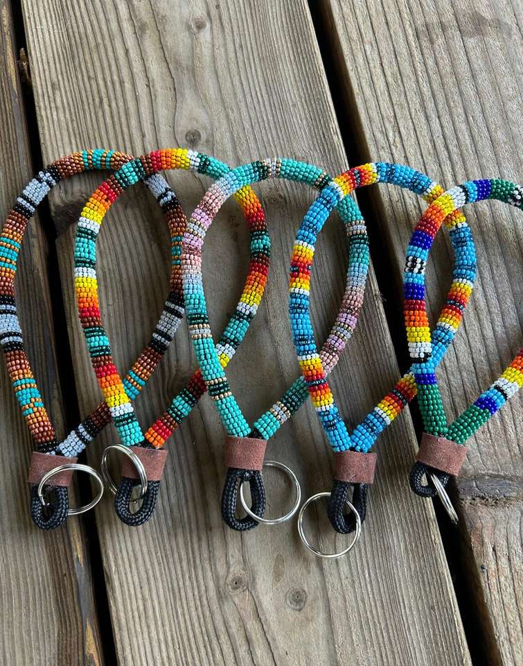 Stylish and Durable Long Beaded Loom Car Key Chain Mini Fashion Vehicle Key Holder with Leather and Metallic Material