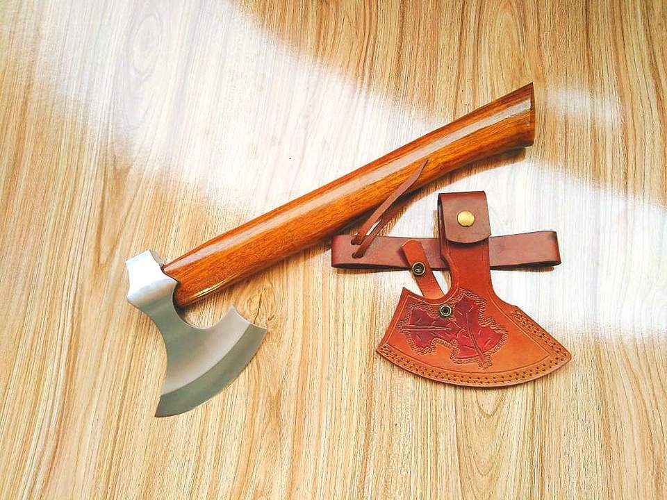 Long-Beard Viking Style Polished Blade Axe High Carbon Damascus Steel Hatchet with Wooden Handle for Camping and Cutting