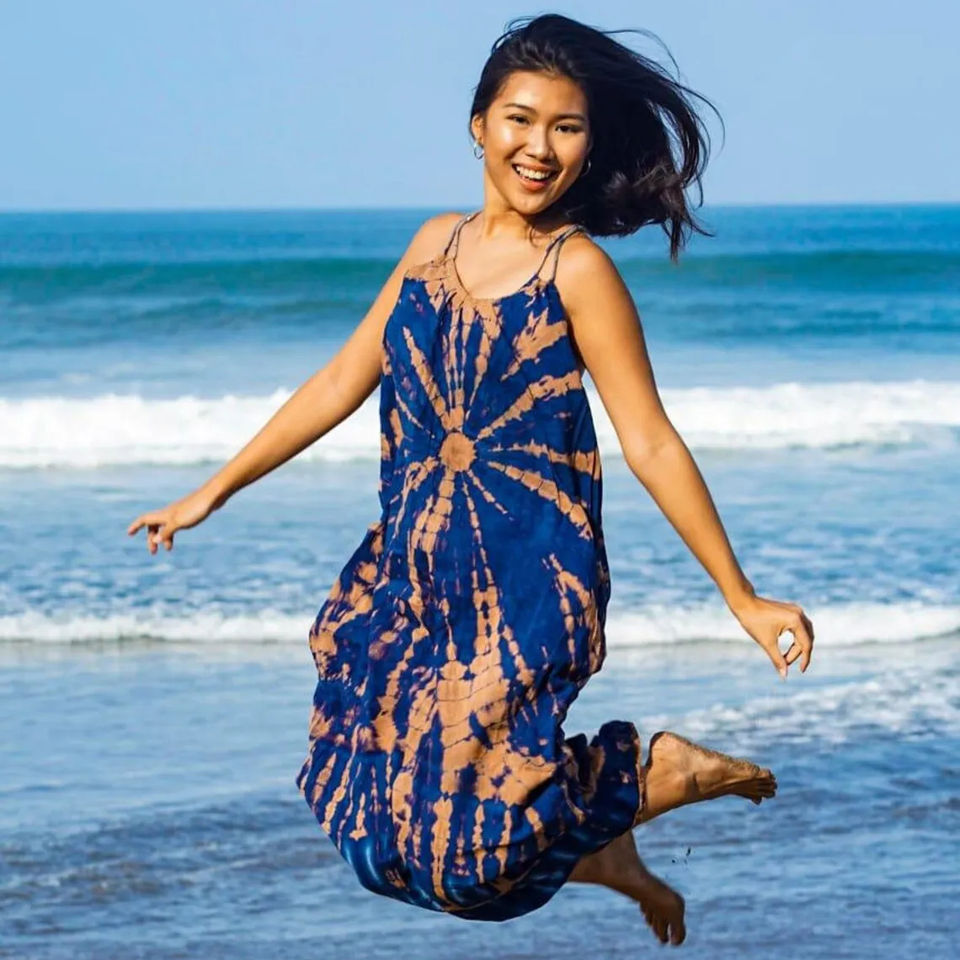 Long Boho Maxi Bamboo Racerback Tie Dye Rope Strap Dress With Pockets
