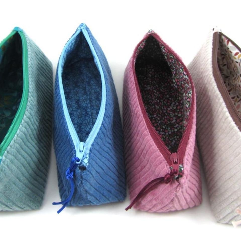 Long Corduroy Pencil Case Custom Triangle Corduroy Zipper Case Makeup Storage Organizer Pencil Stationery Bag Student Pen Pouch