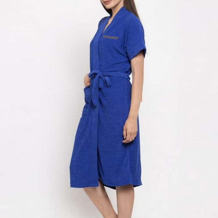Long Cotton Terry Thermal Bathrobe 100% Black Spa Robe with Collar Custom Logo Hotel Sleepwear for Men Made in Pakistan
