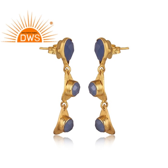 Long Drop Designer Earring Fashion Jewelry Wholesaler Blue Chalcedony Brass Gold Plated Jewelry Manufacturer