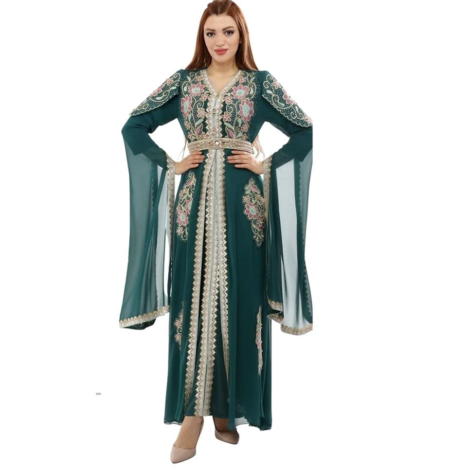 Long Evening Arabic Dress New Muslim Women Green Kaftan Islamic Maxi Dress Long Sleeve Arab Jilbab Abaya Wholesale From India