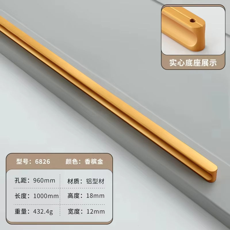 Long Extruded Zinc Alloy Modern Furniture Hardware Bedroom Dresser Handle Drawer Pull Wardrobe File Cabinet Kitchen