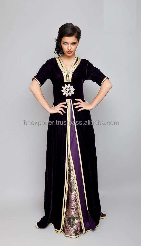Long Half Sleeves 3 Piece Caftan With Printed and Silk Fabric With Golden Lace Work With Belt