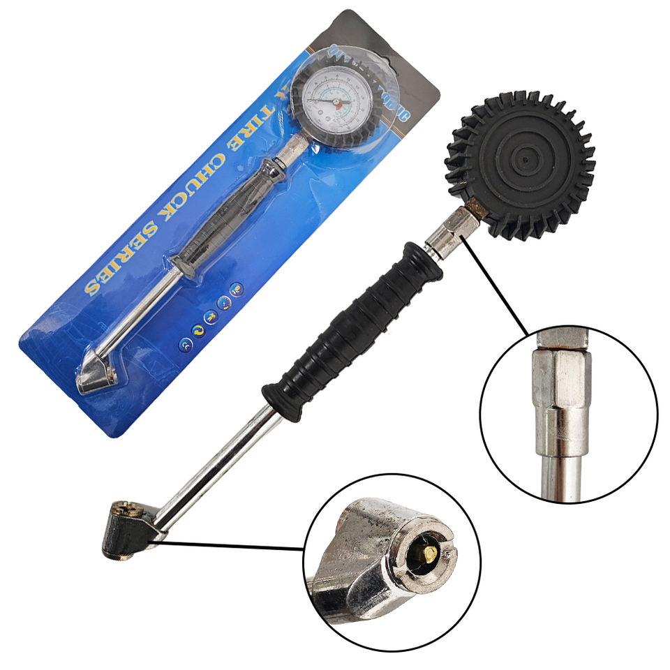 Long Handle Tire Pressure Gauge & Inflator - Dual-Head Design with Durable Metal Construction
