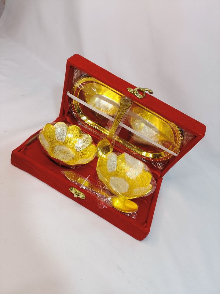 Japanese Design Metal Aluminium Flower Shape Serving Bowl & Tray & Spoon Long Lasting Customized Wedding Gift Gold Velvet Box