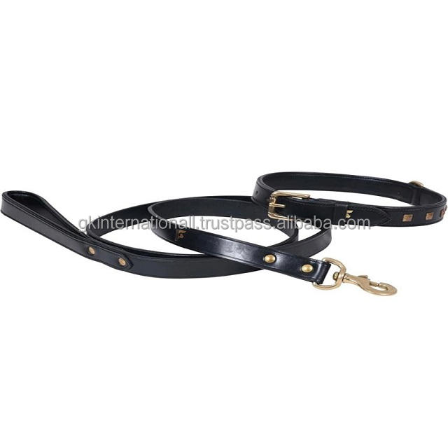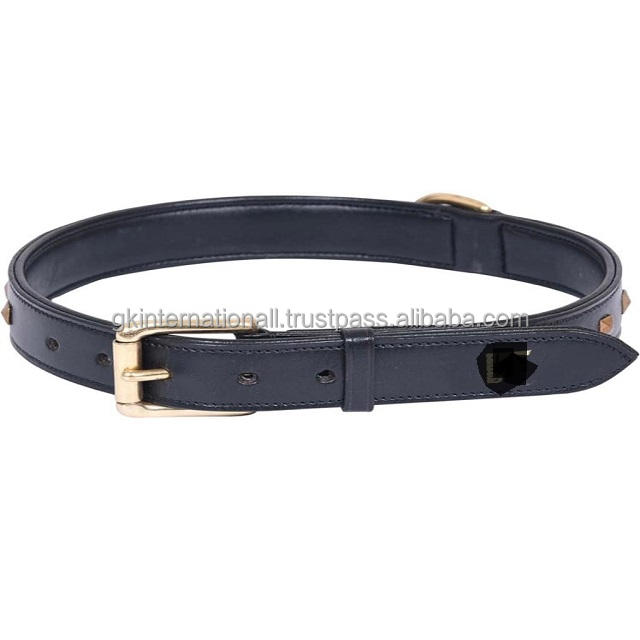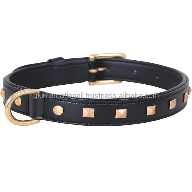 Long Lasting Natural Vegetable Tanned Black Leather Dog Collar with Soft Padding Stitched & Brass Plated square Studs All Sizes