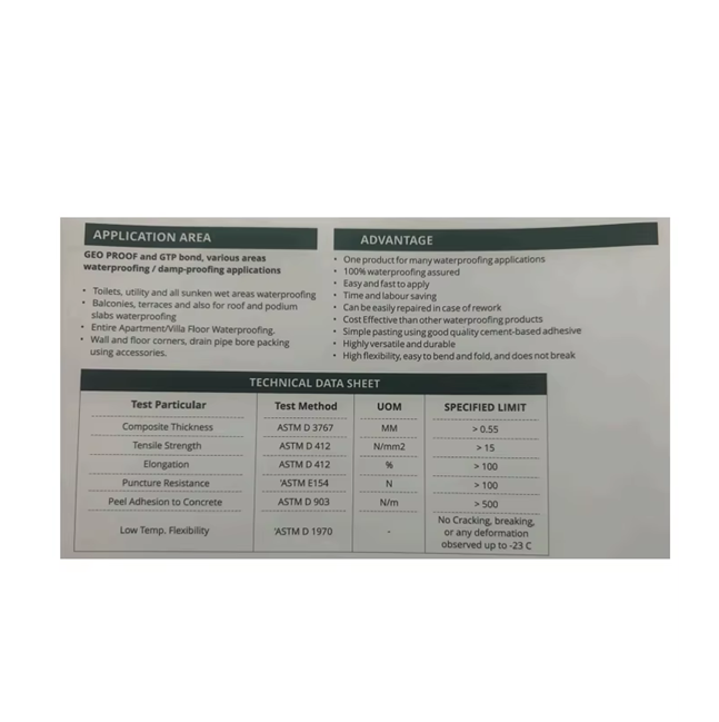 Long Life Waterproof Sheet Membrane for Concrete Roof and Foundation Use Perfect for Subgrade Construction