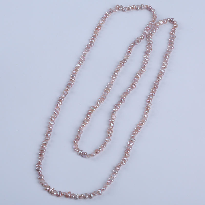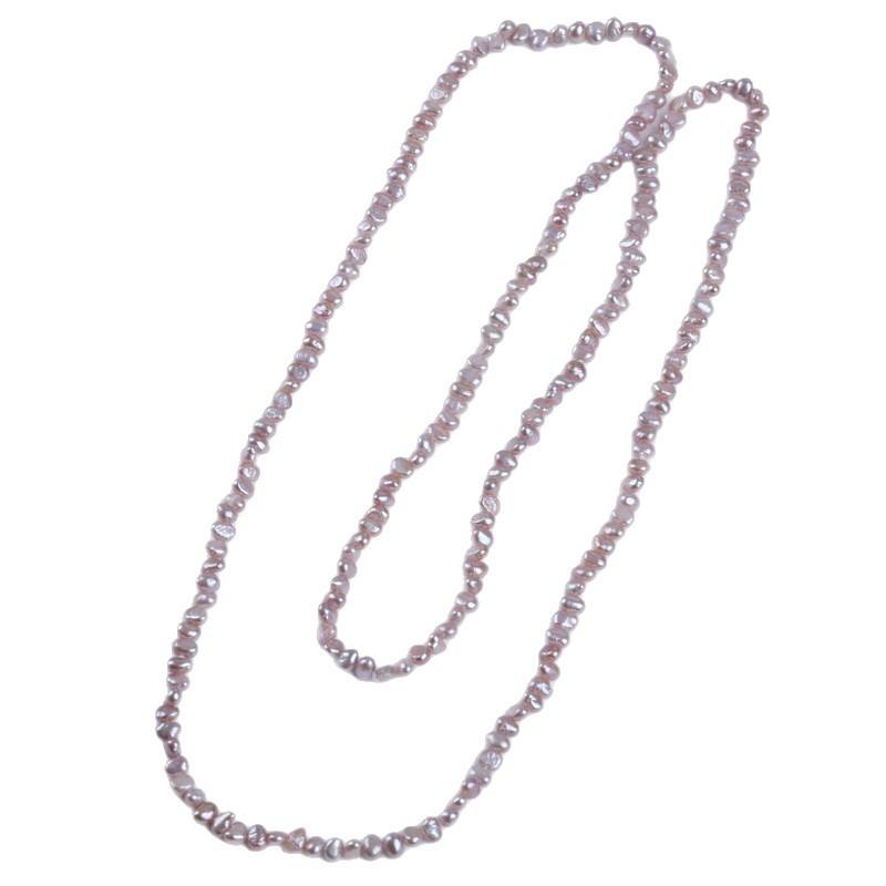 Long Light Purple 4-5mm Cross-Border Side Hole Two Sided Pearl Necklace Fashionable Sweater Chain for Gifts