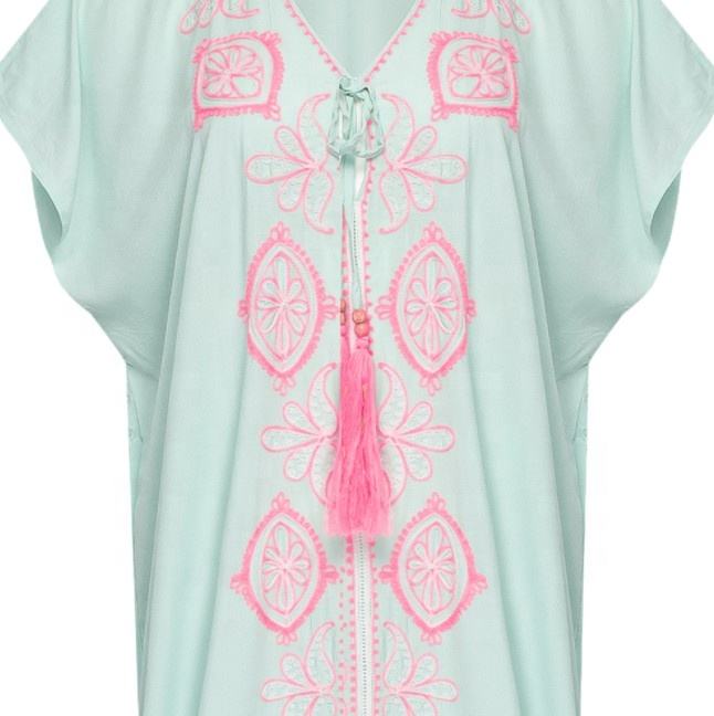 Long Loose Fit Stunning Embroidered Casual Beach Wear Kaftan Boho Swimsuit Cover Up Gown With Tassel Decor For Beautiful Ladies