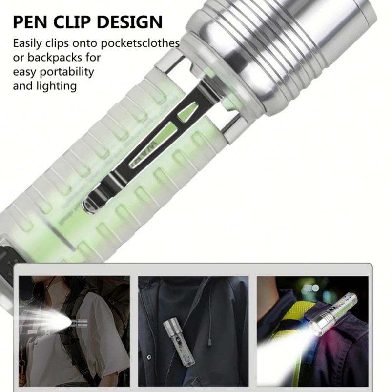Long Range 30W LED White Zoom Transparent Fluorescent Flashlight With Clip Magnet Light Tactical Bright Outdoor Torch Lantern