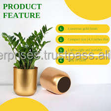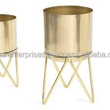 Long Rode Stand Big Round Shape Brass Planter Pot High Quality Metal Brass Garden Storage Planter Outside Flower Pot and Planter