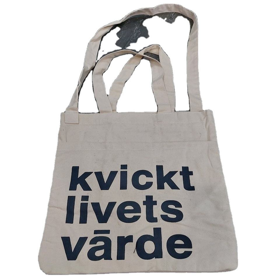 Long-Shoulder Silk Screen Printed Cotton Canvas Small Size Shopping Tote Bag with Attractive Letter Pattern