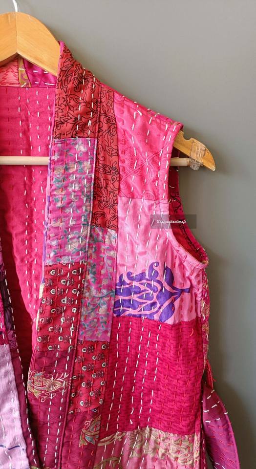 Long Silk Patchwork Custom Sleeveless Women's Vests & Waistcoats With Pockets Ladies Casual Outer Wear Vintage Jackets