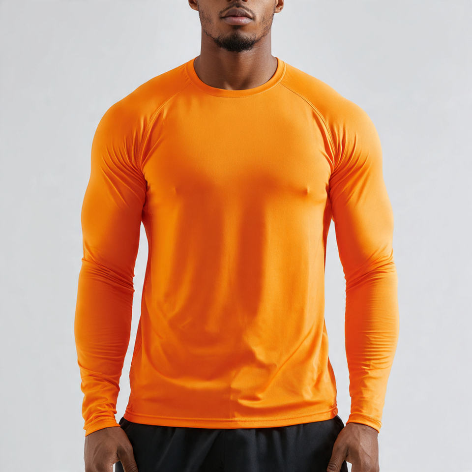 Long Sleeve Compression Rash Guard 100% Polyester Workout Athletic Shirt Men's Quick Dry Crew Neck Compression Shirts Men