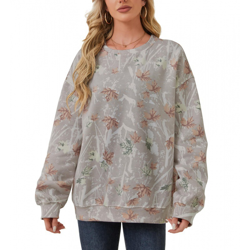 Long Sleeve Cotton Fleece Women's Turtleneck Pullover Sweatshirt with Camo Pattern Front Logo Customizable Design