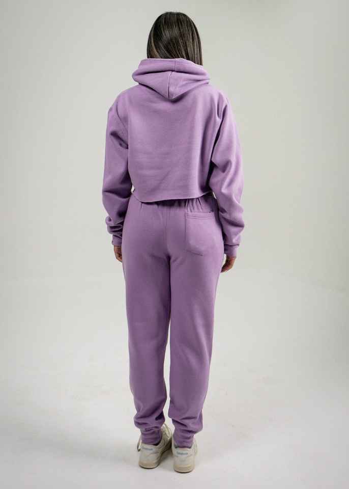 Long Sleeve Cropped Hoodie Ladies Purple Cotton Fleece Hoodies Women Sweatshirt with Drawstring Outerwear Clothing OEM Gymwear