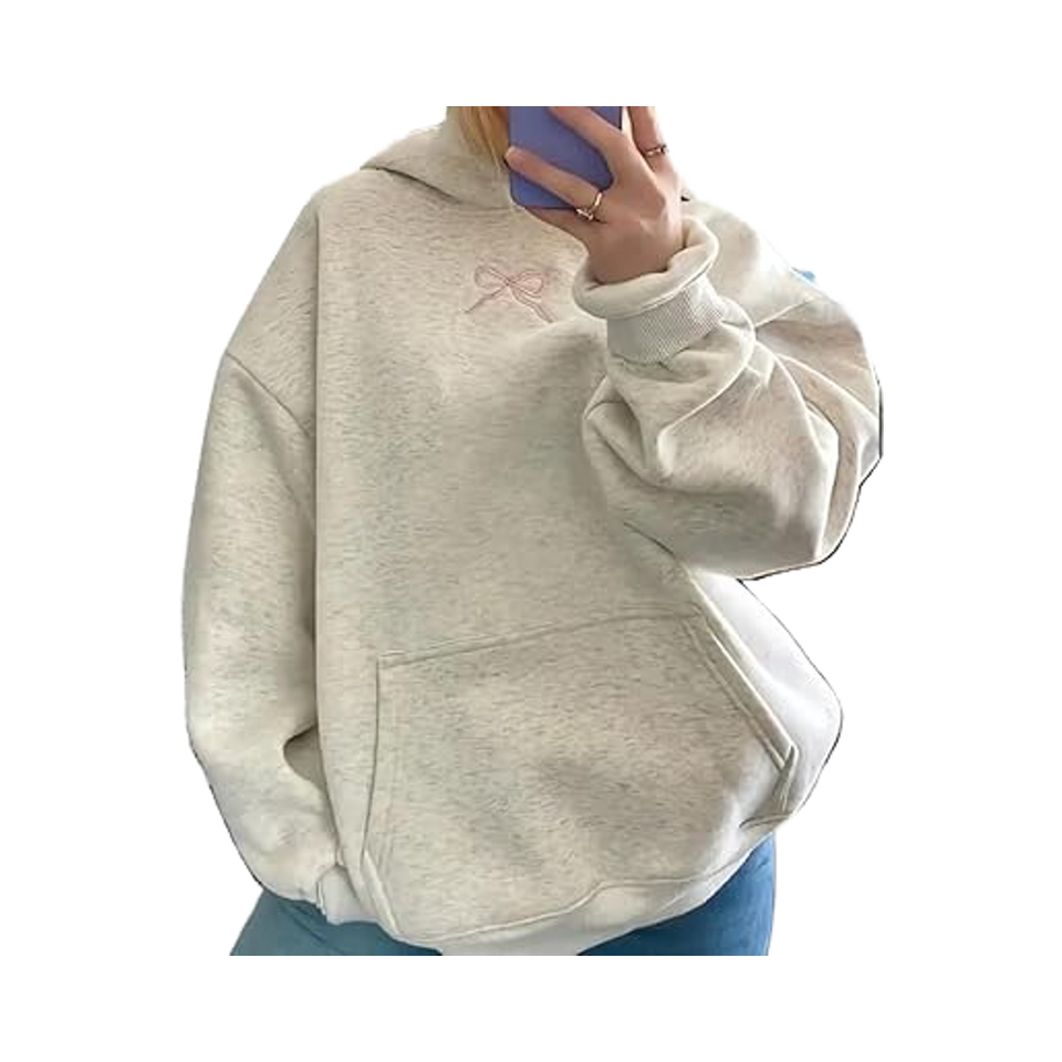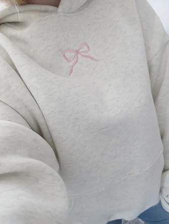 Long Sleeve Cute Sweatshirts Hoodies for Teen Girls Preppy Casual Embroidered Bow Knitted Summer Front Hooded Sweatshirt Fall