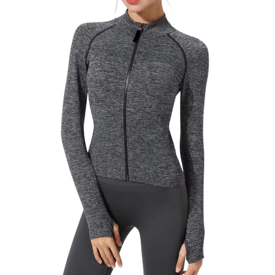 Long Sleeve High Elasticity Peach Mock Neck Yoga Jacket Women Full Zip Slim Fit Gym Athletic Wear Workout Top