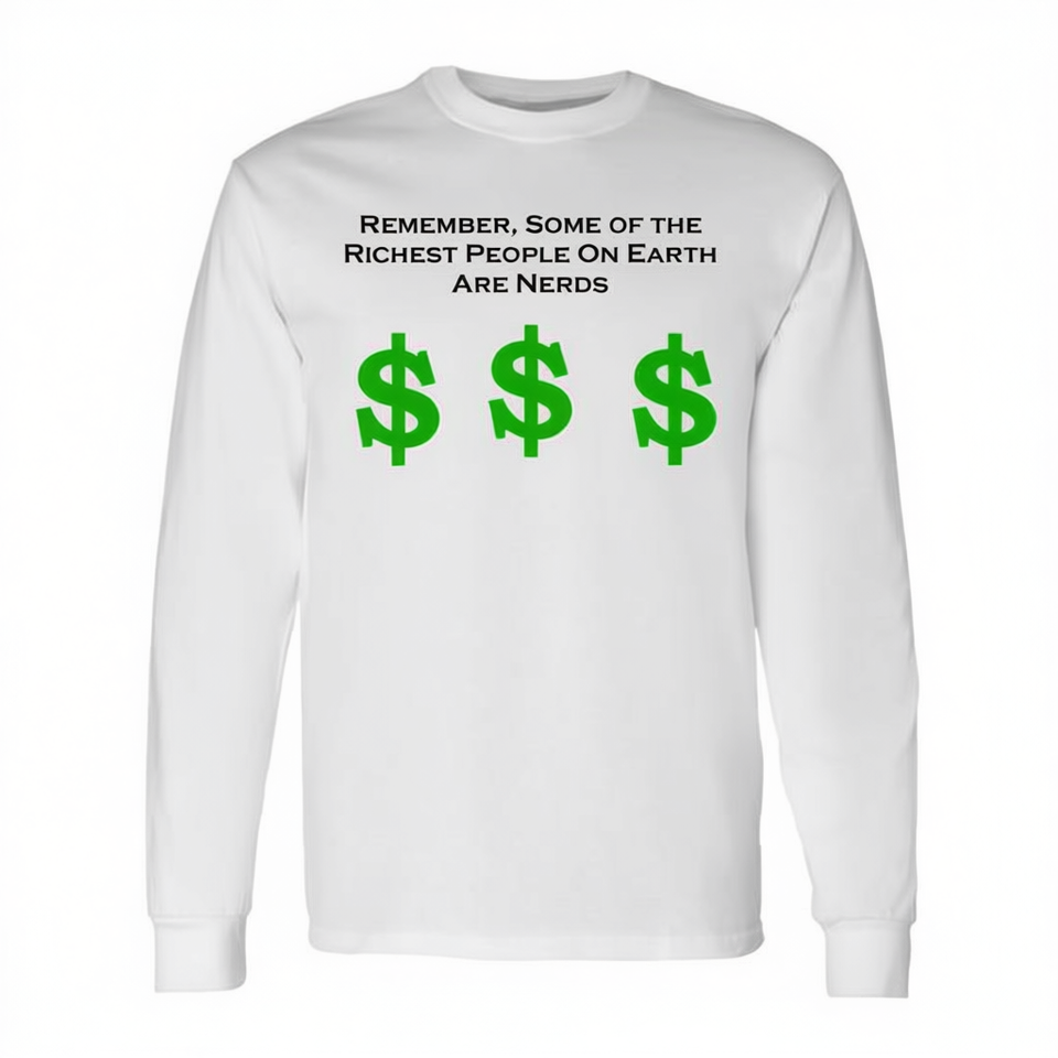 Long Sleeve T-Shirt Remember Some Of The Richest People On Earth Are Nerds Green Dollar Signs