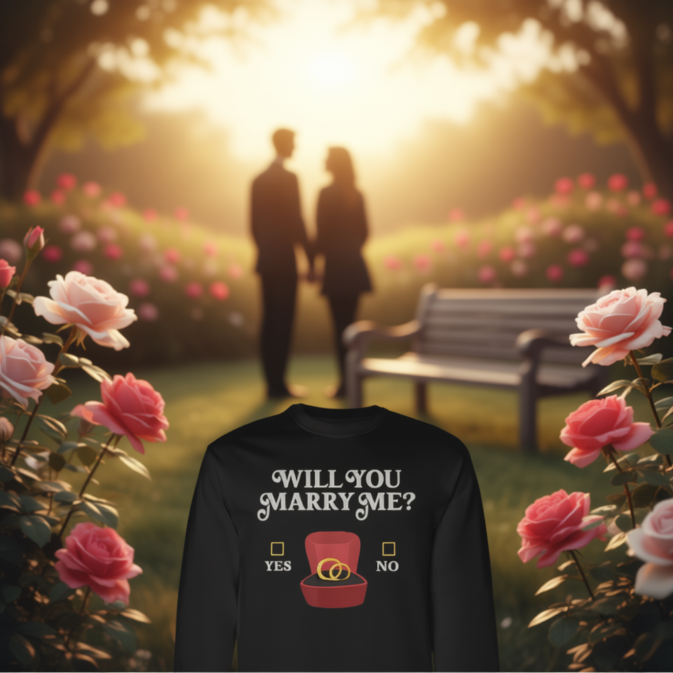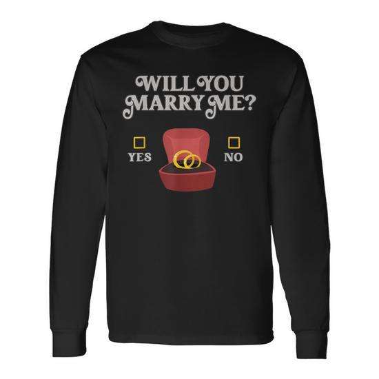 Long Sleeve T-Shirt with 'Will You Marry Me' Proposal Sign Engaged Rings for Romantic Moments Announcements Promotional Product