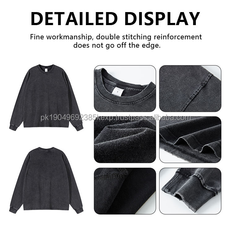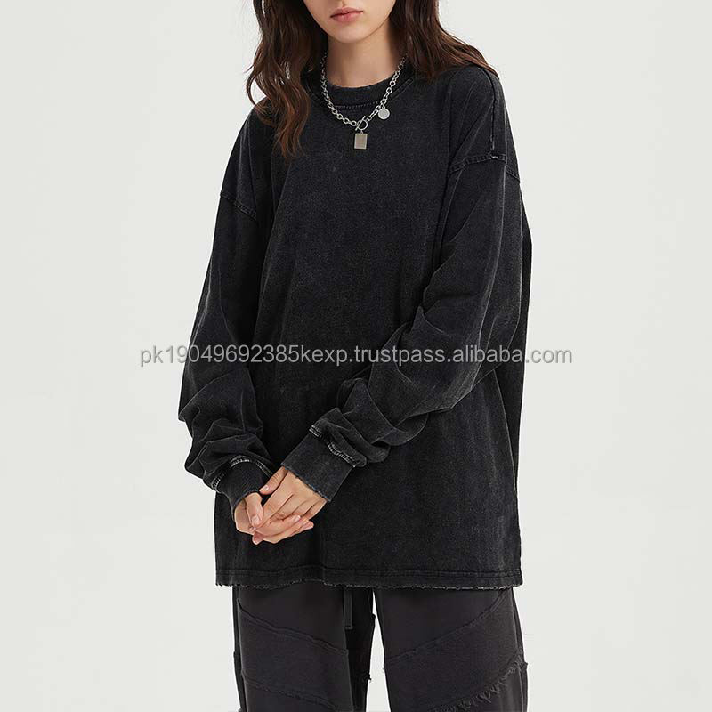 Long Sleeve TShirt Custom Streetwear 250 Gsm Vintage Acid Wash Heavy Weight T-Shirt Distressed Black Cotton Long Sleeve T-Shirts