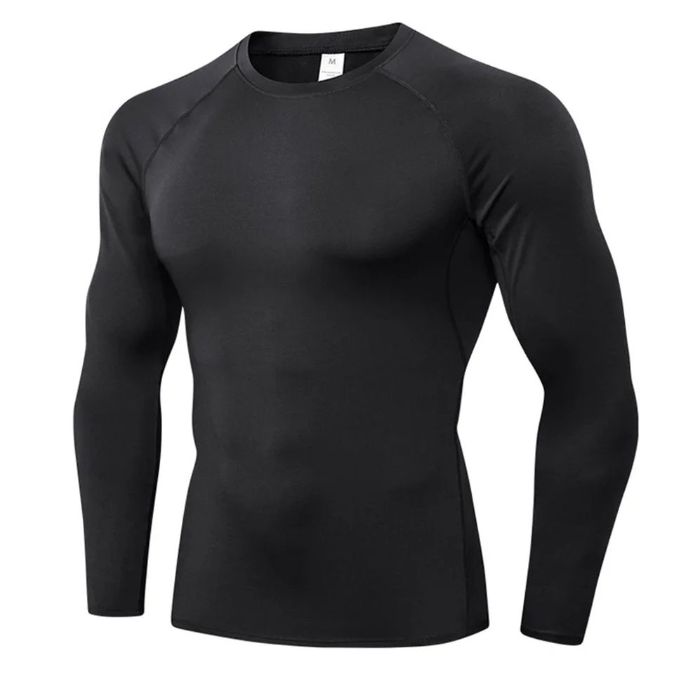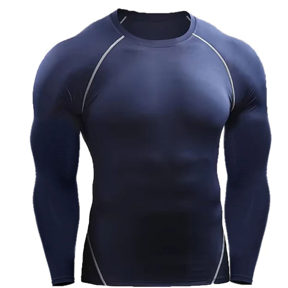 Long Sleeve Tight Fit Compression Shirt Men Quick Dry Gym Training Top Base Layer Athletic Sports Running Fitness Workout