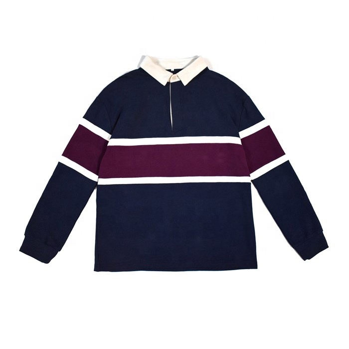 Long Sleeves 100% Cotton Polo Rugby Jersey Shirt Customized Stripe Knitted Polo Shirt