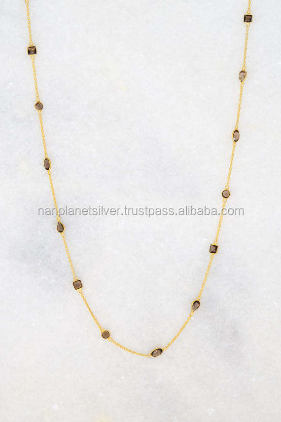 Long-Stranded Smoky Quartz with Gold Vermeil Elegant Layered Necklace for Engagement Wedding Anniversary or Party Gift Idea