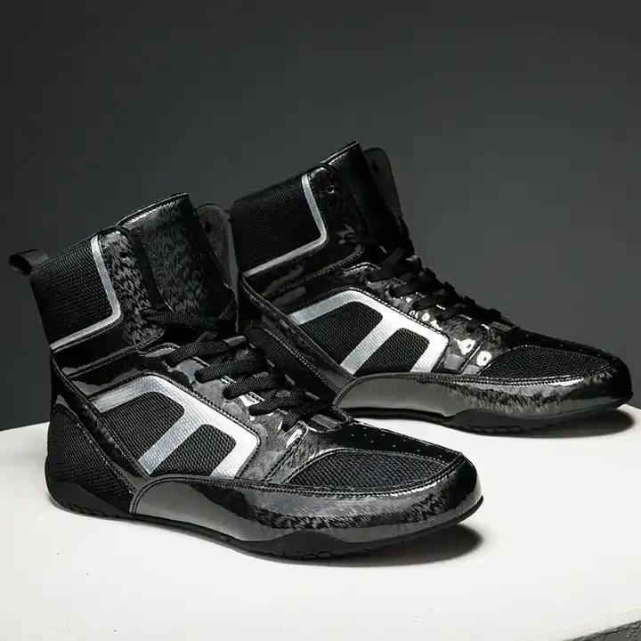 Long-Style Genuine Leather Boxing & Wrestling Shoes Breathable Rubber Insole with Mesh Material Tie-Shoes Design Summer Training