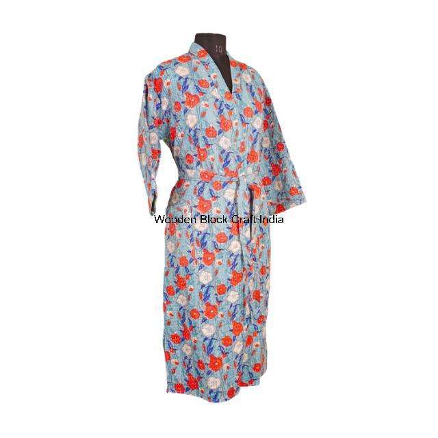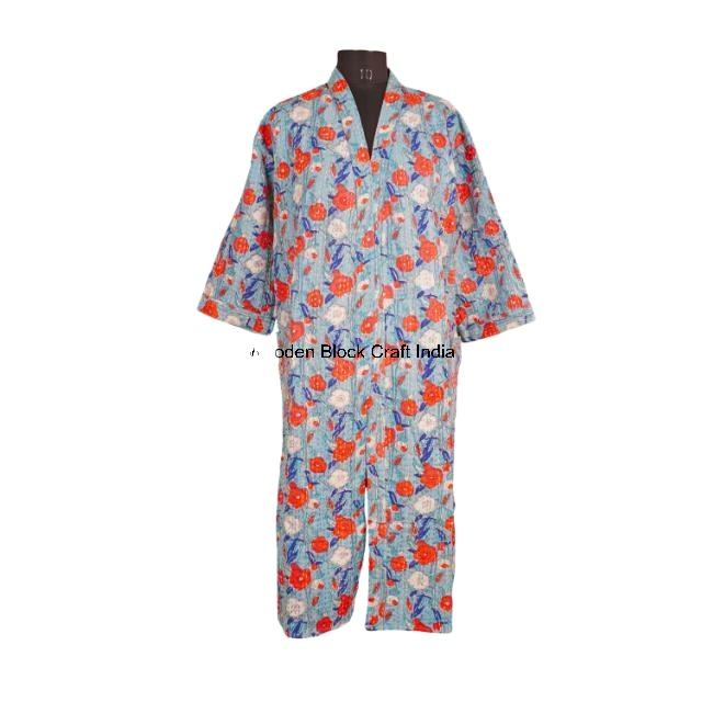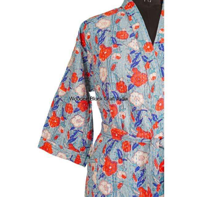 Long Vintage Organic Pure Cotton Kantha Quilted Kimono Robe Handmade Indian Festival Fashion Sleepwear Jacket Cozy