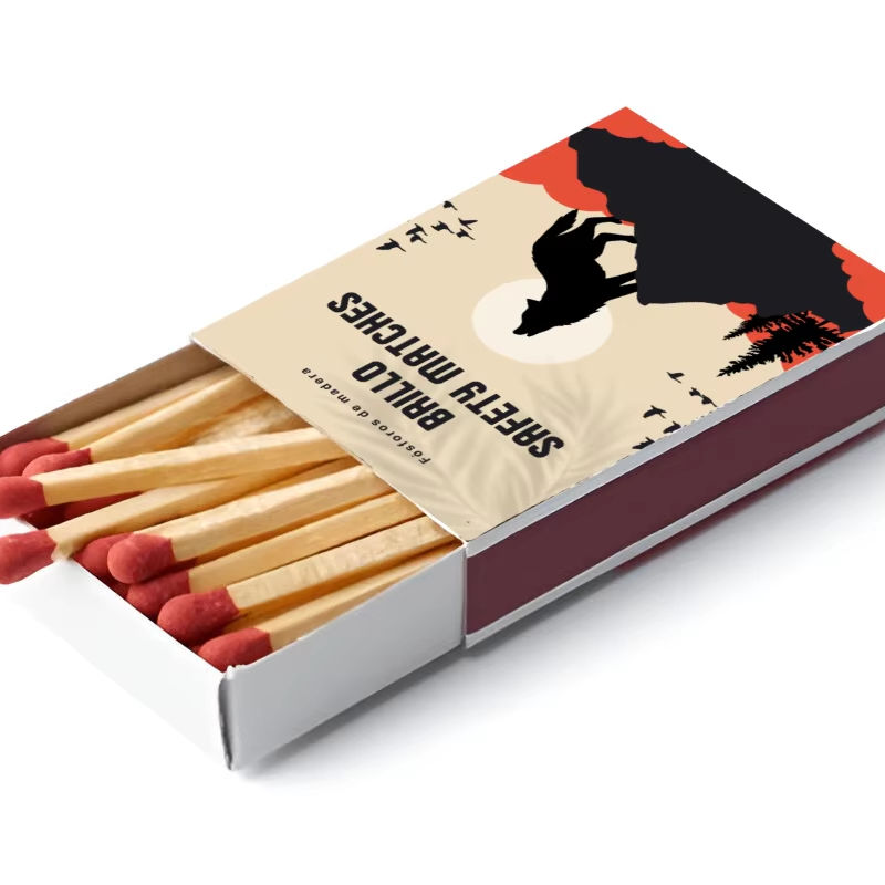 Long Wax Wooden Sticks with Colorful Heads Big Kitchen Safety Matches Printed Logo Paper Material for Household Use