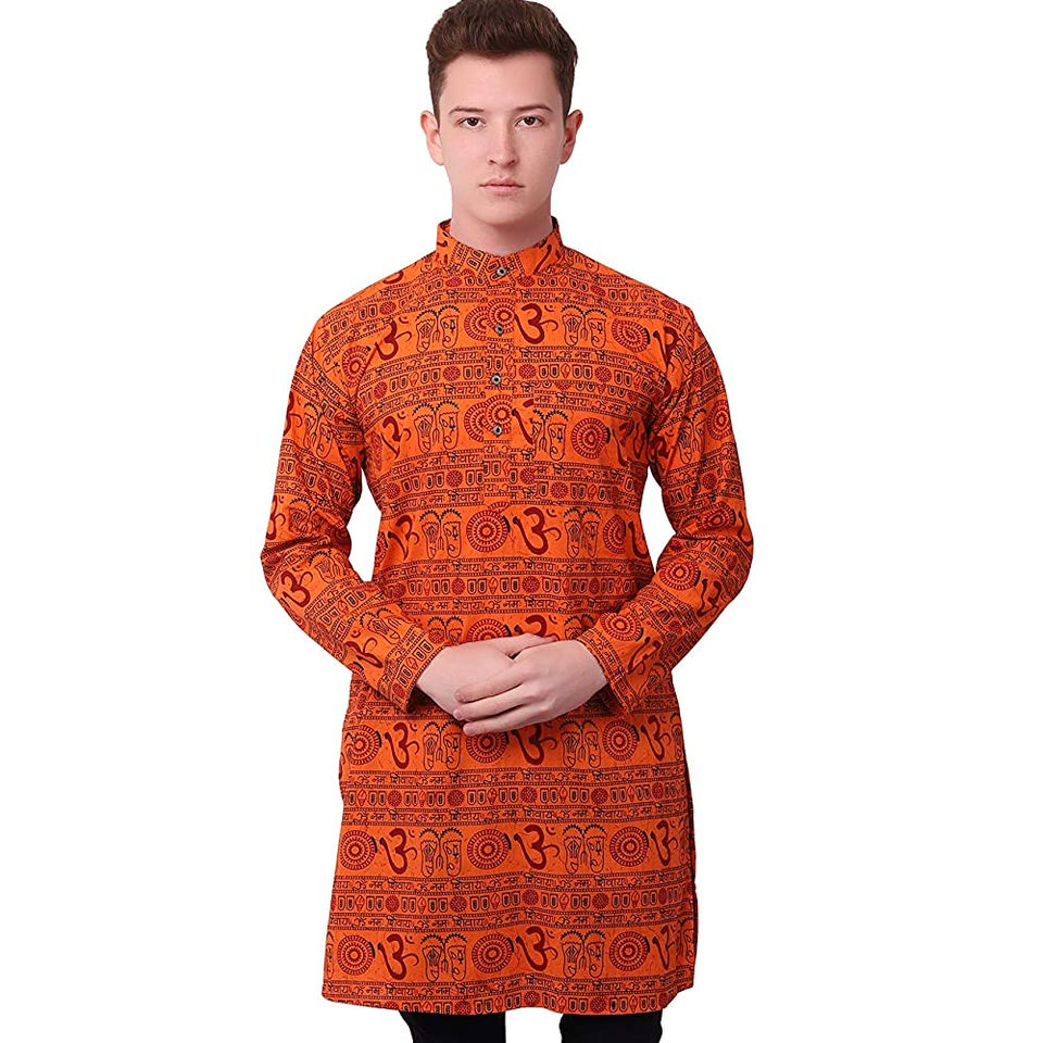 Long Yoga Gypry Hippie Kurta Shirt Casual Gauze Kurta Cotton Men Om Hare Rama Hare Krishna Tunic Kurta Regular Size Large