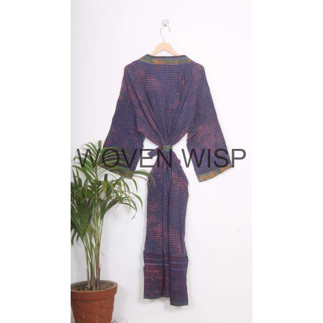 Unisex Tie-Dye Kimono Long Cotton Indian Dressing Gown Block Print Beach Cover XL Size Bridesmaid Gift Bath Home Use Linen