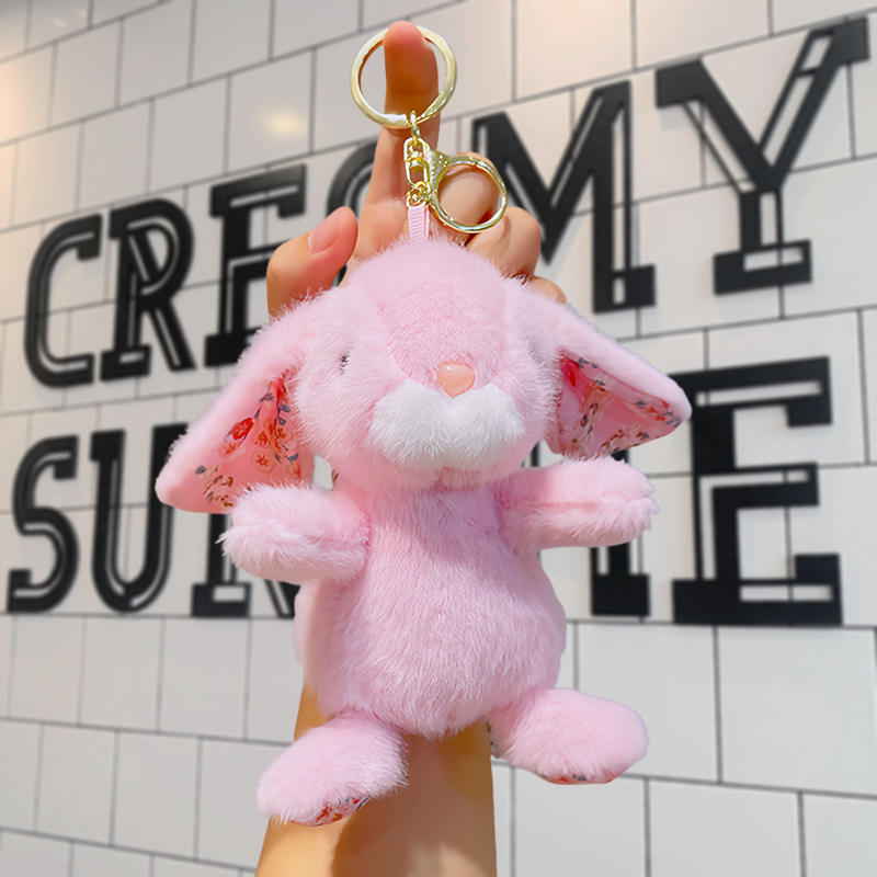 Long-eared Floral Rabbit Plush Toy Soft Cute Cartoon Rabbit Doll Small Hanging Accessory Backpack Pendant Keychain