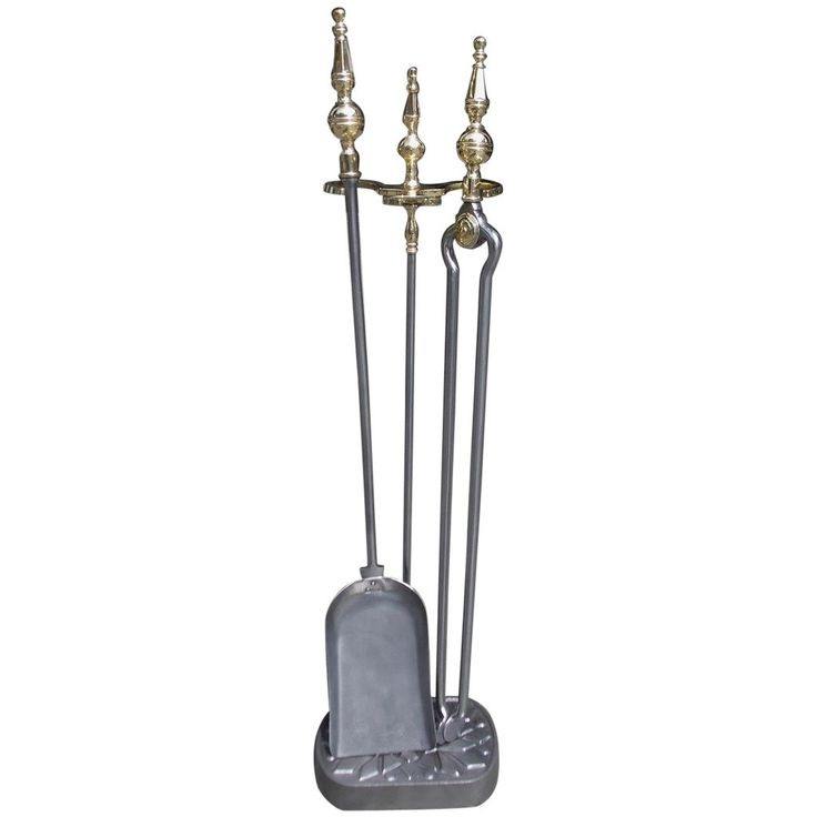 Long handled brass fire tool set with tall matching stand and detailed design crafted for safety and visual appeal