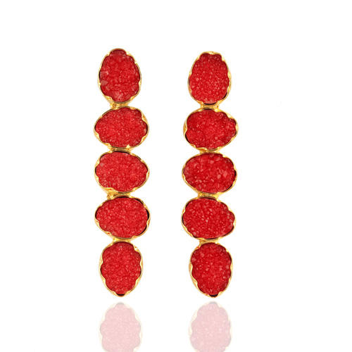 Long pair dangle earring sparkle red sugar agate druzy long pair drop earring brass 18k gold plated party wear for women earring