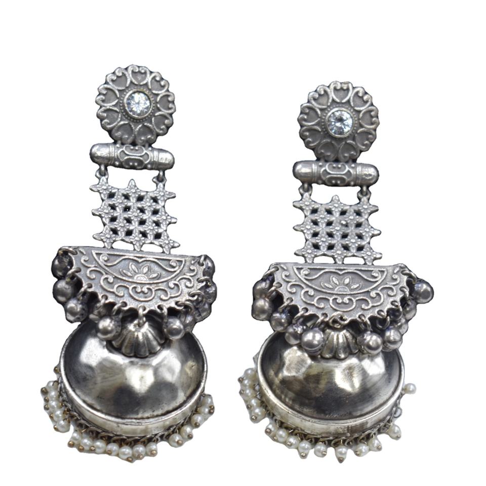 Long silver look alike stud earrings party wear handmade pearl beads brass material kundan jhumka earing for wholesale bulk
