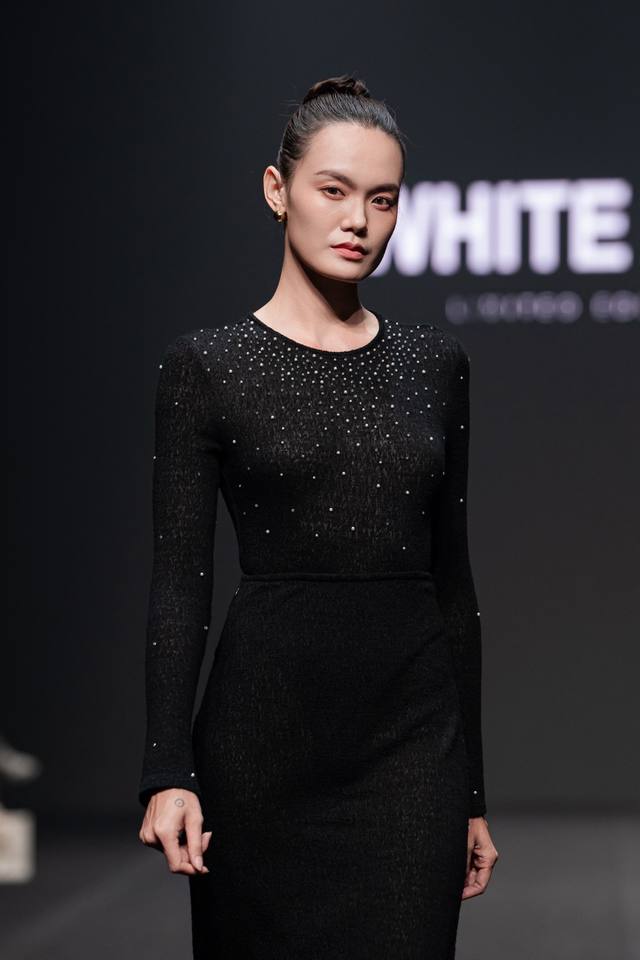 Long-sleeved Round-neck Wool Tops for Women in Stock Crystal-beaded ARI WOOL LACY JACQUARD EMB TOP Women's Sets WHITE ANT