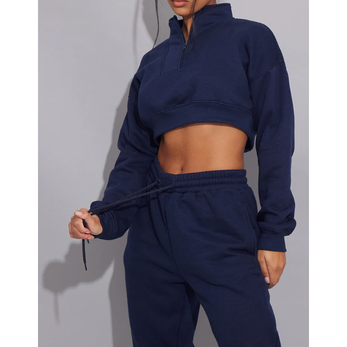 Long Sleeves Winter Solid Casual Women's Two Piece Set Breathable Embroidered Customized Track Suits High Quality 2pcs