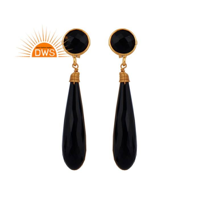 Longing Black Onyx Gemstone Earring Dangle Designer Gold Plated Silver Wire Designer Earrings Jewelry Supplier