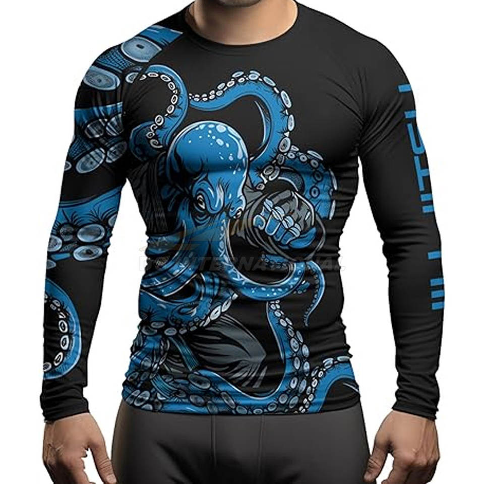 Loose Fit BJJ Rash Guard Mens Long Sleeve MMA Jiu Jitsu Training Shirt Stretch Quick Dry Grappling Top No Gi Compression