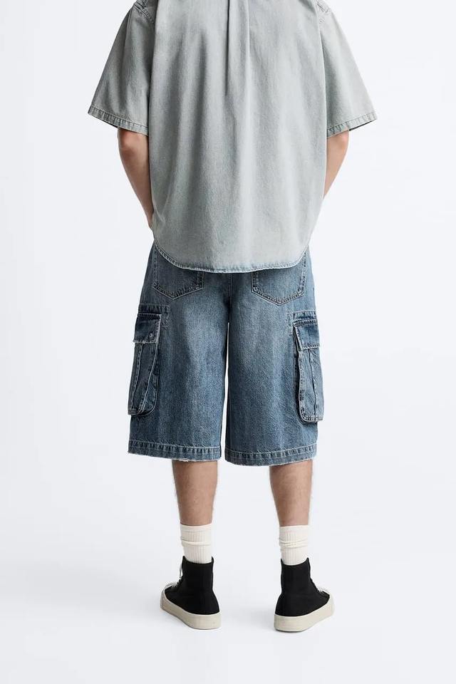 Loose Fit Cargo Denim Shorts Customize logo Sun Faded Effect Men's Shorts Manufacturers for Customs Clothes