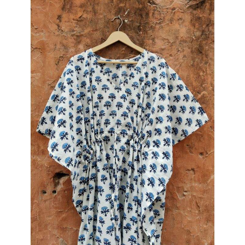 Loose Indian Kaftan Dress Beach Wear Indian Tunic Floral Cotton Soft & Comfortable Hand Block Print Wholesale Maxi Gown