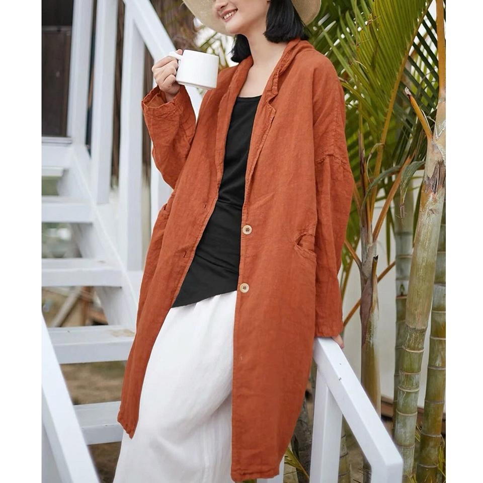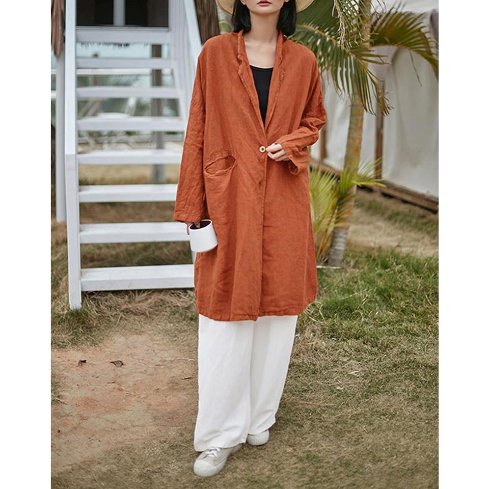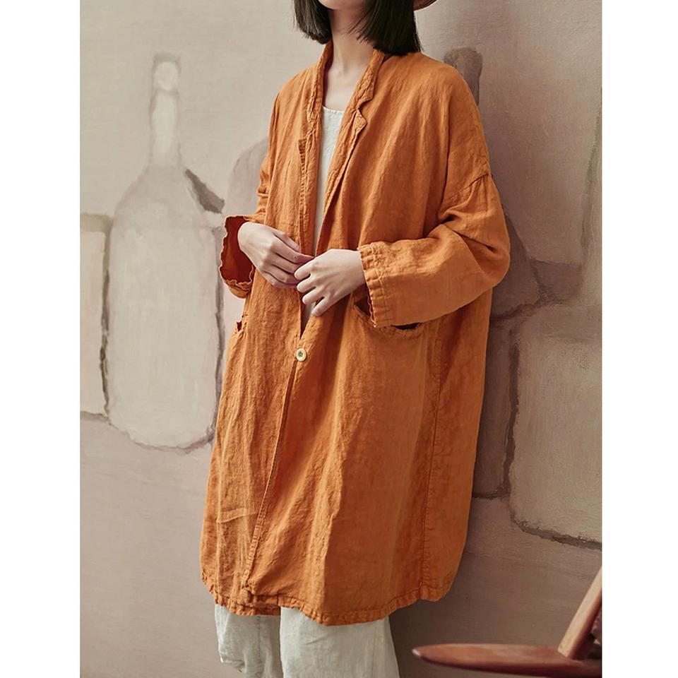 Name product:Loose Linen Coat Linen Duster